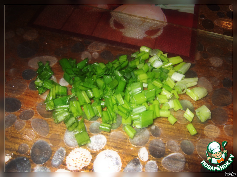 Жарим блинчик из трех яиц и щепотки муки. Можно и без муки обойтись.