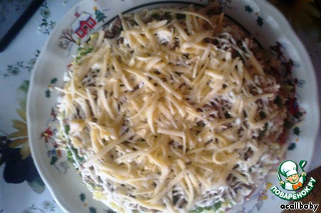 Салат выкладываем слоями. Каждый слой ппомазываем майонезом.