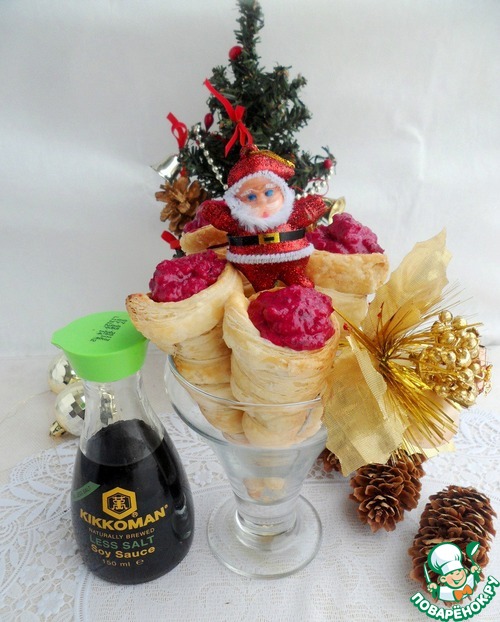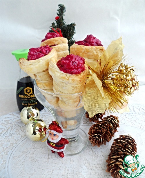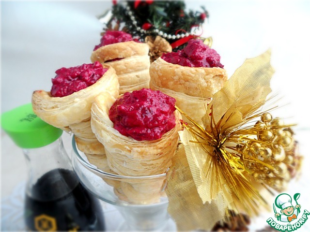 | Обычной селедкой под шубой никого не удивишь, поэтому решила приготовить салат из селедки и подать его в испеченных слоеных трубочках под свекольным муссом. На столе эта закуска исчезает в первую очередь и смотрится очень выигрышно. |