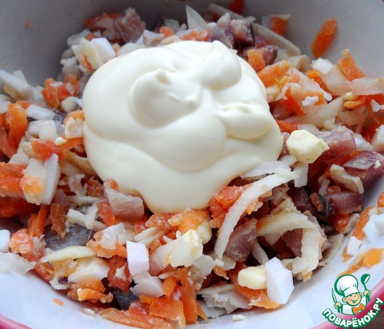 Салат из селедки под свекольным муссом