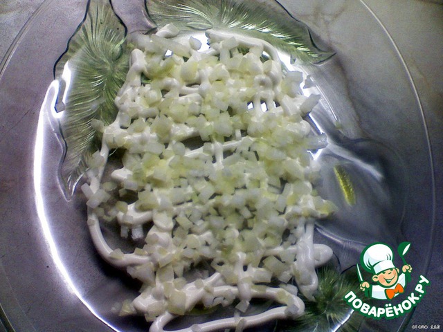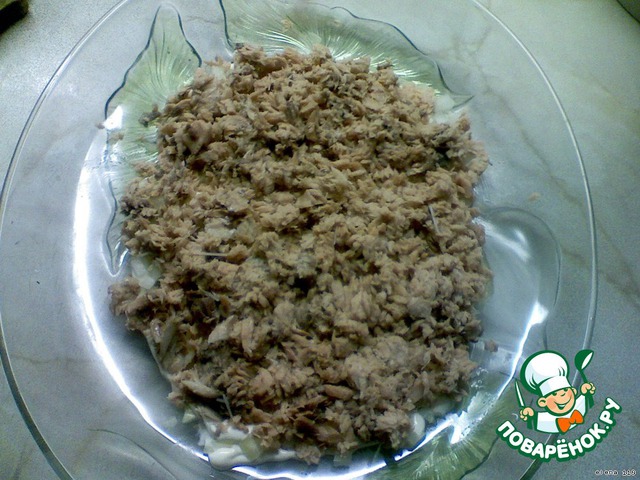 Далее снова повторить слои, только вместо горбуши положить сайру.