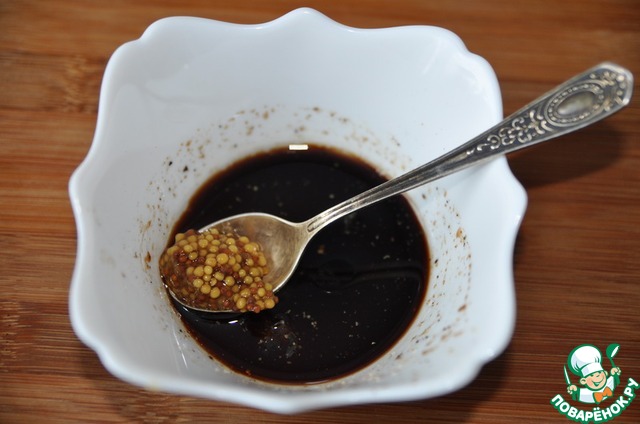 В оставшуюся заправку добавляем горчицу, перемешиваем.
