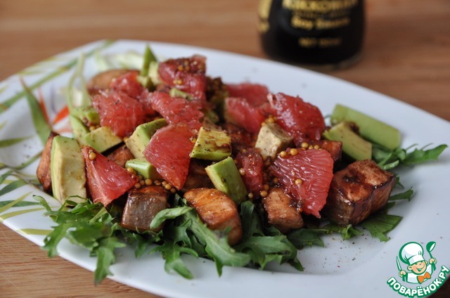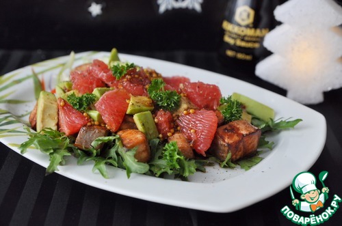 | Это салат от шеф-повара ресторана "Круиз" на берегу Амурского залива. Очень вкусное сочетание сочного лосося-гриль с авокадо, цитрусовыми и пикантной заправкой. Этот салат непременно понравится вашим гостям на Новогоднем застолье. |