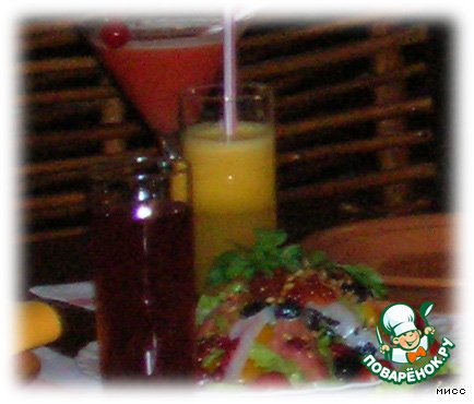 | В воскресенье отмечала в ресторане своe 45 -летие. Там и был этот салат, не судите строго, что публикую этот рецепт, не сама его делала. Да, и не сделаю дома никогда из-за извращенности ингредиентов. Но может кто-нибудь захочет попробовать, обалденно вкусно. |