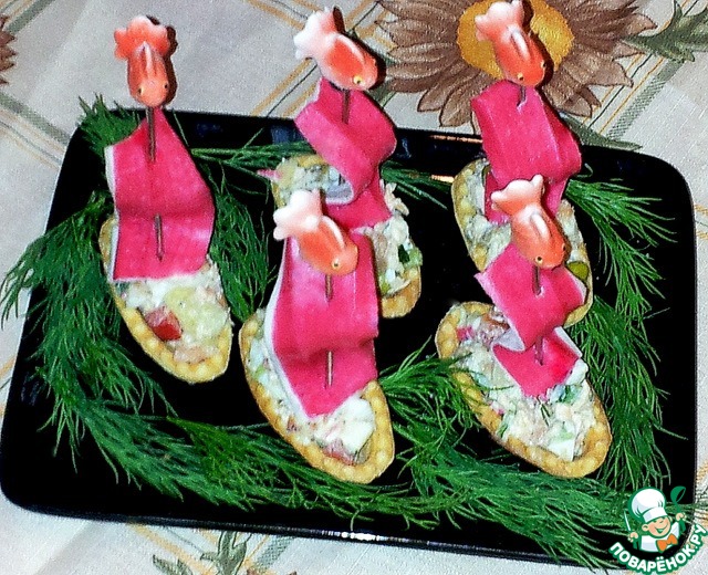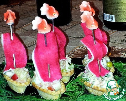 Рыбный салат я решила оформить в виде лодочки - парусника.