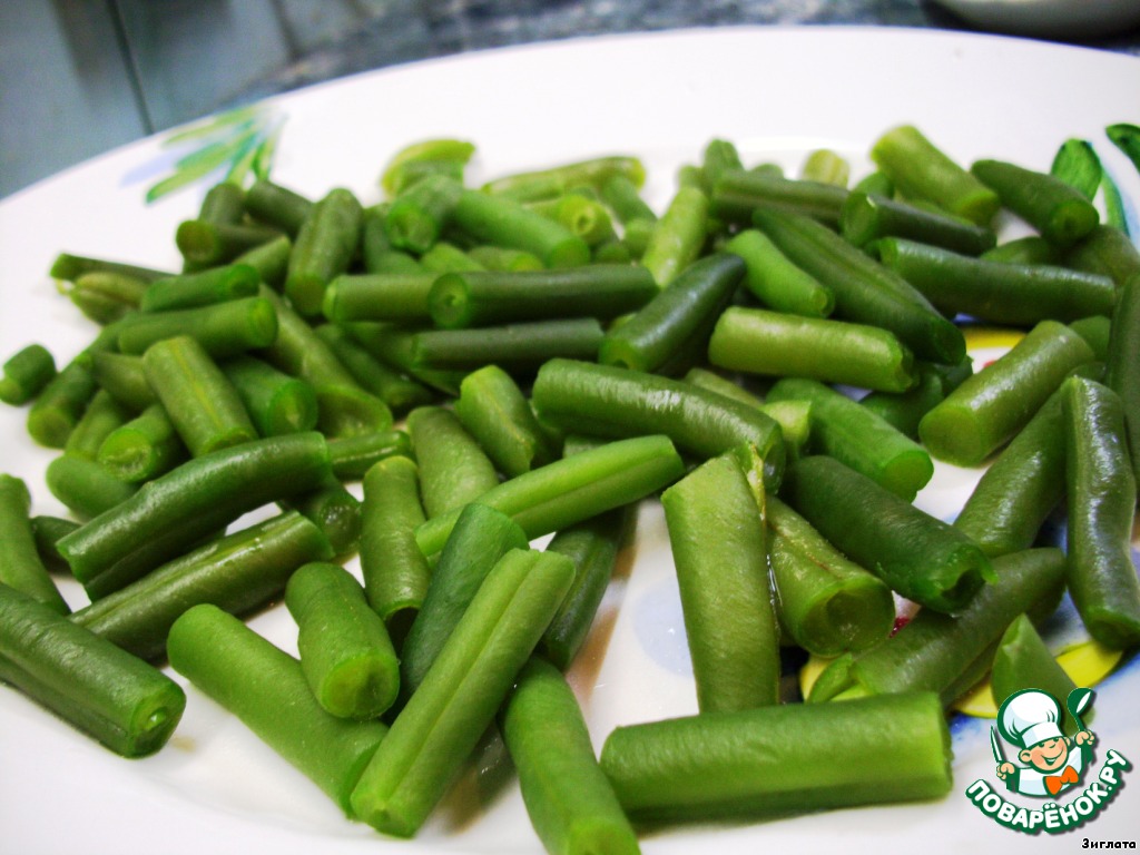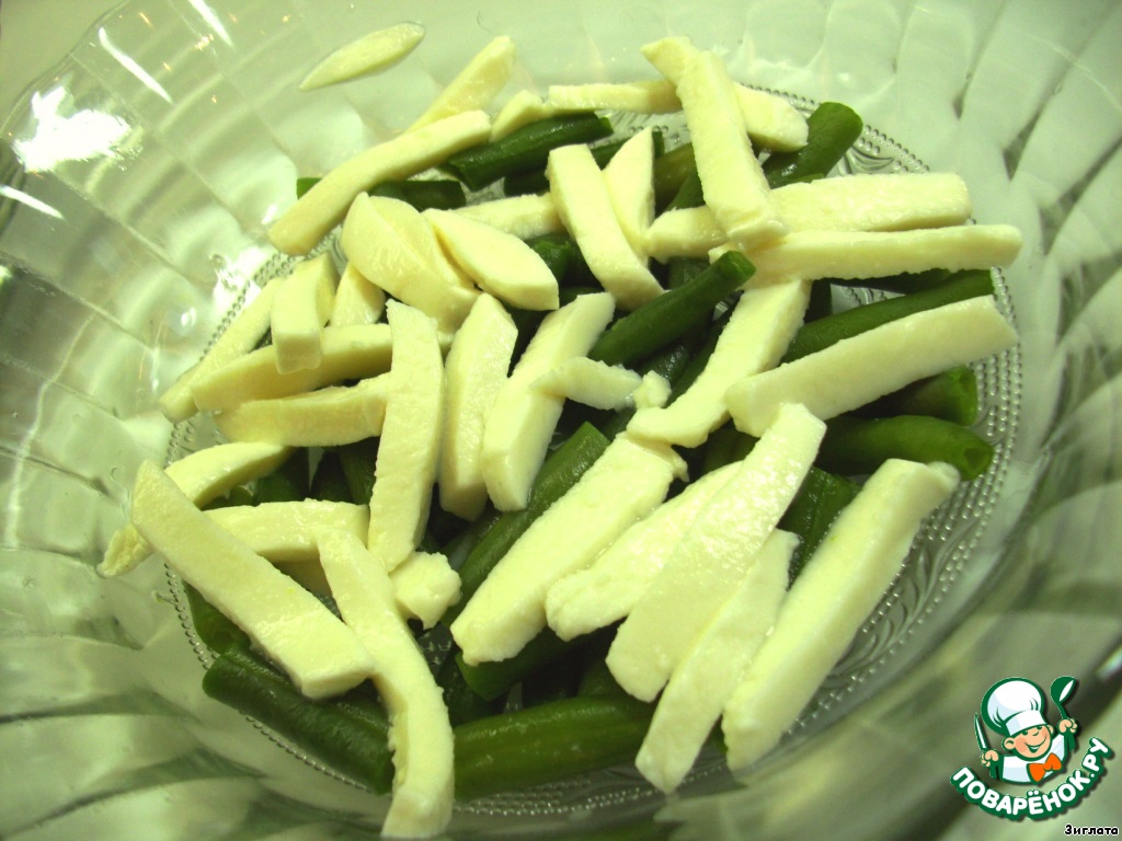 Легкий салат с рыбой, моцареллой и стручковой фасолью