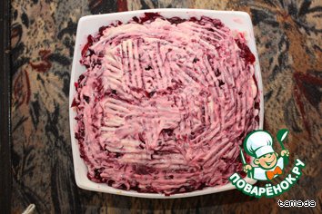 Предпоследний шаг - свеколка, которую хорошенько промазываем майонезом