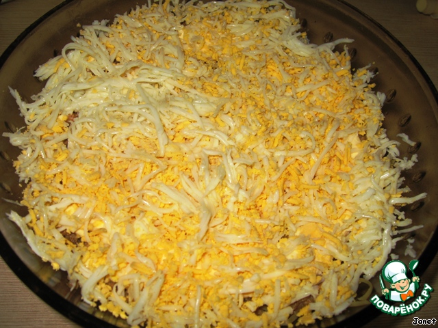 Яйца потереть на мелкой тёрке.