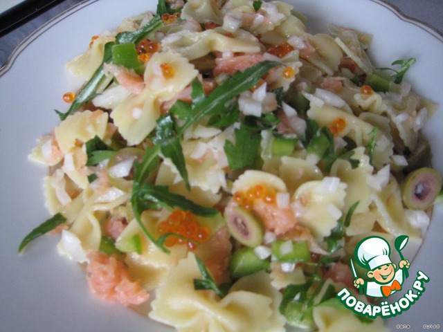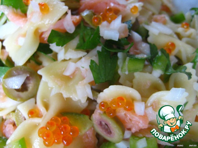 | В этом салате можно использовать любые макаронные изделия. Добавляем рыбу, овощи, оливки, заправляем салатным соусом и обед готов. Такой салат вполне заменит вам основное блюдо в жаркую погоду - достаточно питательно, быстро и вкусно! |