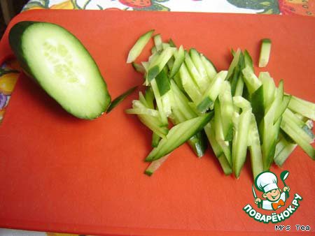 Огурец нарезать соломкой.