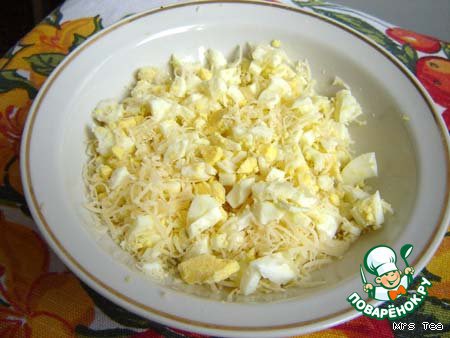 Лук и яйца мелко нарезать.