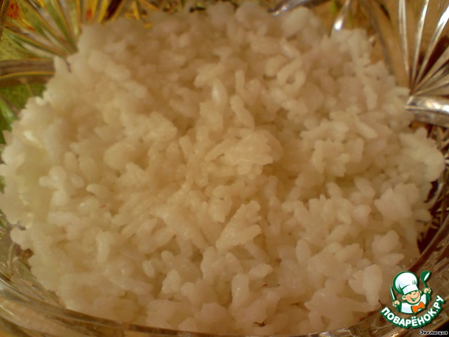 Сверху – отваренный в подсоленной воде рис. Кладем половину имеющегося риса. Смазываем майонезом. Выкладываем порезанный на полоски чернослив (заранее распаренный в кипятке). Фотку я сделать запамятовала:-( Кладем не слишком толстым слоем. На чернослив кладем оставшийся рис. Смазываем майонезом.