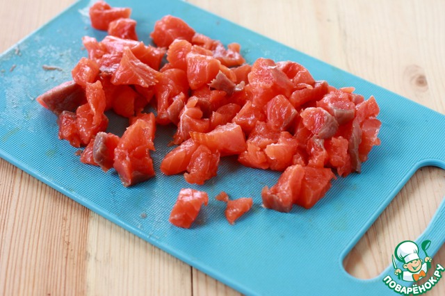 Рисовый салат с копченой форелью и домашним соусом тартар