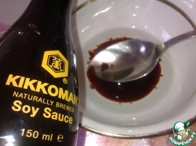 Готовим маринад: смешиваем соевый соус"Kikkoman" с растительным маслом и уксусом.