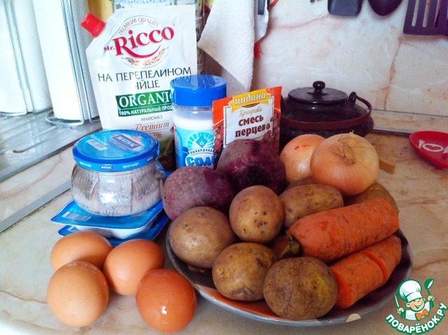 Овощи, кроме лука, отвариваем до готовности и остужаем. Яйца варим вкрутую.