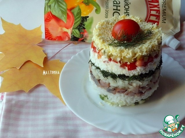 2 слой - рис + майонез.