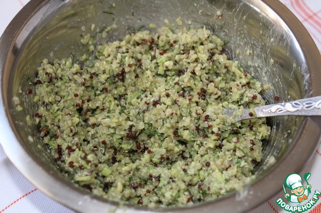 В миску с киноа добавила пасту из авокадо и орехов и хорошо перемешала.