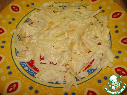 Яблоко почистить и натереть на крупной терке. Размешать с майонезом провансаль от Махеевъ.