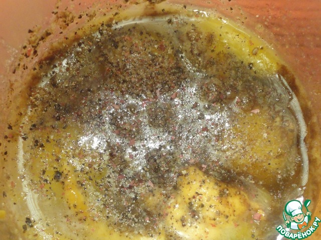 И в конце добавляю для аромата свежемолотый черный перец. Т. к. ароматические вещества в перце хорошо растворяются в жирах, а майонез - соус жирный, то тут перец будет как нельзя кстати.