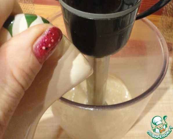 Теперь начинаем сбивать блендером, постепенно подливая растительное масло. В этот раз я раскошелиласть на оливковое. Для майонеза на каждый день беру масло попроще: кукурузное или рафинированное подсолнечное. Сбиваю сразу на высоких оборотах. Единственно, что сам блендер приходится двигать вниз и вверх, чтобы масло, которое мы наливаем сверху, попадало под блендер. Процесс несколько усложнен, т. к. стакан норовит подпрыгнуть вверх за блендером, а третьей руки, чтобы его держать, у меня нет. Я выкручиваюсь или с помощью мужа, или дочки, а если никого рядом нет, то кладу горлышко бутылки на край стакана и таким образом его придерживаю. Надеюсь, эти мелочи и вам пригодятся.