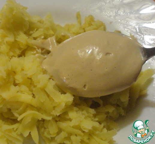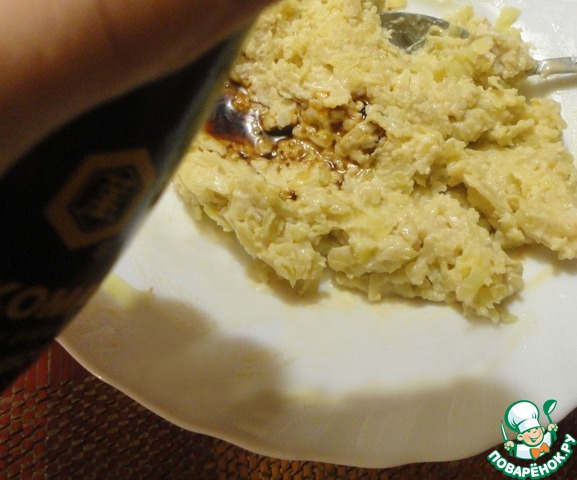 Я уже писала о подсаливании овощных слоев. Так вот, в картофельном я использую вместо соли соевый соус. Он очень хорошо сочетается с картофелем и придает ему неповторимый вкус. Добавляем сначала чайную ложку, мешаем, пробуем и при необходимости добавляем еще.