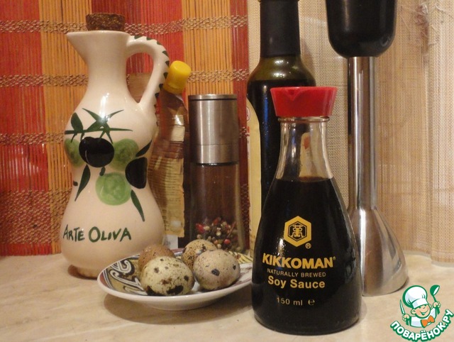 Начнем с приготовления майонеза на перепелиных яйцах "Kikkoman".