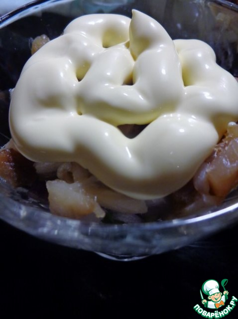 Сбрызгиваем лимонным соком и поливаем майонезом. Перед подачей охладить.