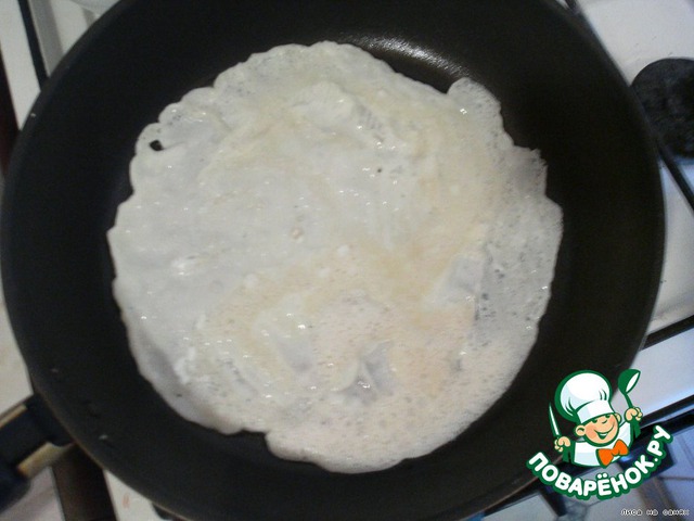На небольшом количестве масла выпекаем тоненькие блинчики