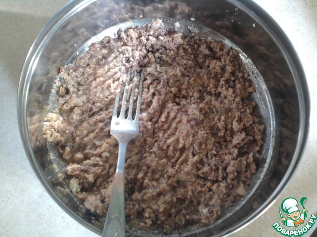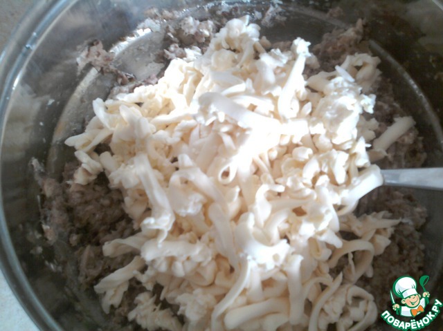 Если сырок натирается, натрите его на крупной тёрке, если нет, просто разомните вилкой в той же посуде, где находится наша рыбка.