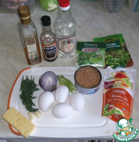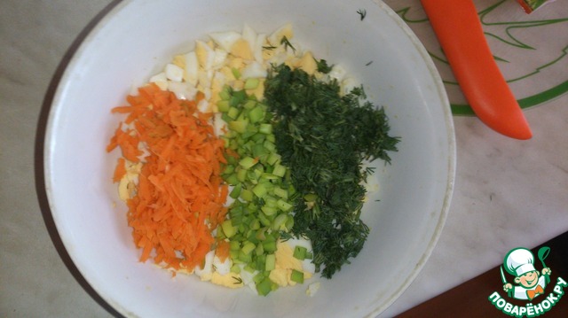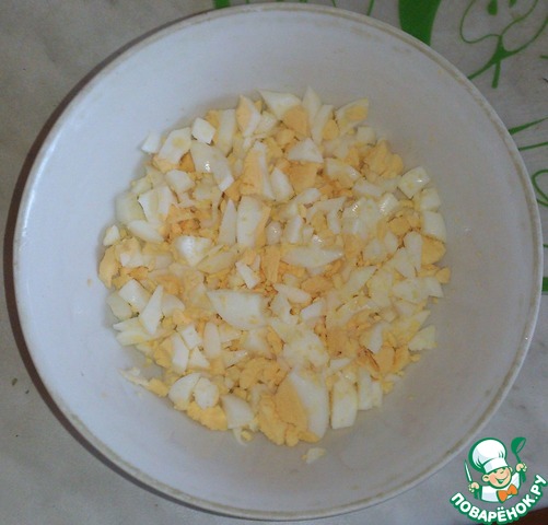 Пока мы готовили маринад, у нас варились яйца (около 15 минут). Остужаем и мелко рубим.