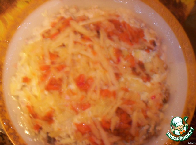 | Салат готовила на Новый год (ничего более оригинального для оформления в голову не пришло :), как альтернативу "Сельди под шубой", которую не очень уважаю. Хочу поздравить всех дорогих и уважаемых поварят с наступившим Новым годом и Рождеством! Счастья и здоровья вам и вашим близким! |