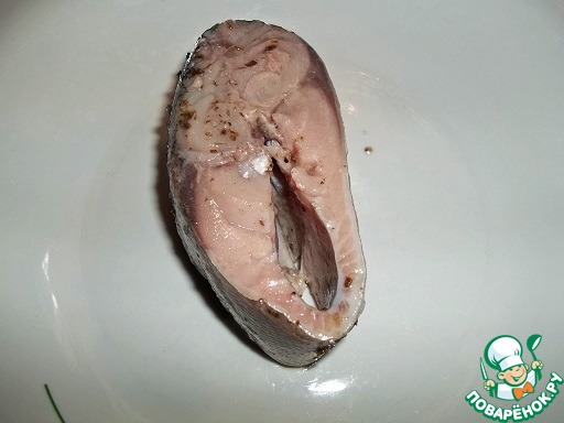 Тунец нарезать на небольшие кусочки. У меня кусочек тунца собственного приготовления, весов нет, но думаю около 80г.