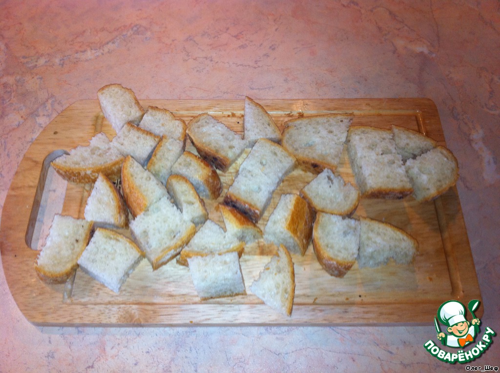 Выложить в форму и смешать помидоры, лук, чиабатту, посолить и поперчить, полить оливковым маслом.