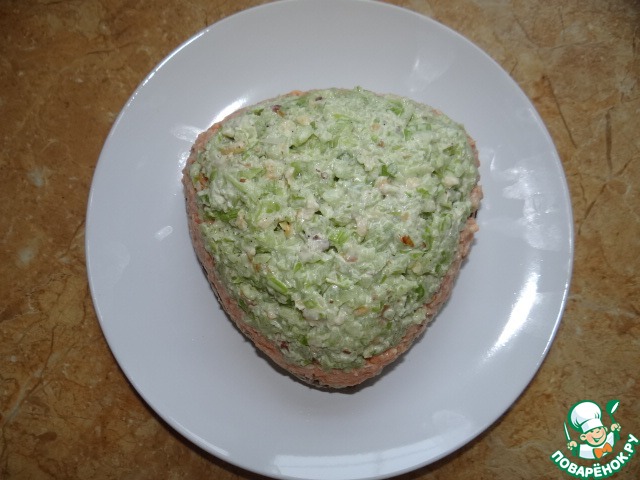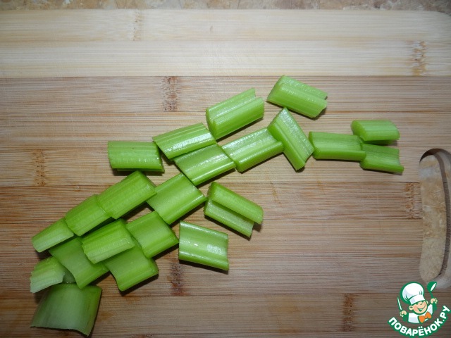 В подходящую тарелку выложить сельдерейный слой - утрамбовать;