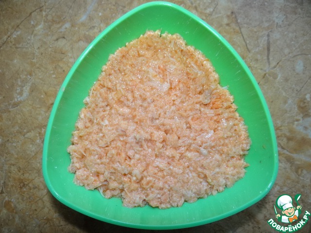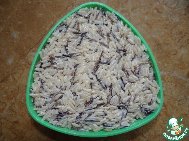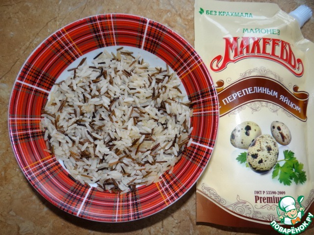Рис подсолить, заправить 1 ст. л. майонеза - размешать;