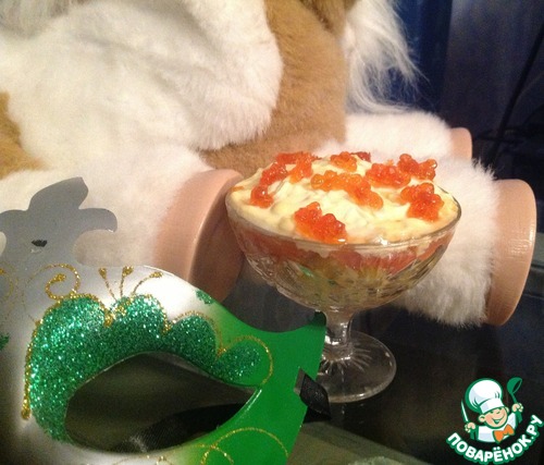 | Оригинальный и вкусный салат. Очень нежный, яркий и очень рыбный))) Быстро готовится, что весьма кстати в предновогодней запарке. |
