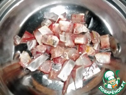 Сельдь очистить от внутренностей, снять кожицу, очистить от костей и нарезать кусочками (Или просто взять филе сельди). Авокадо нарезать так же не слишком мелко. Можно сбрызнуть авокадо соком лимона, чтобы он не потемнел. Я не стала, так как подавала сразу же.