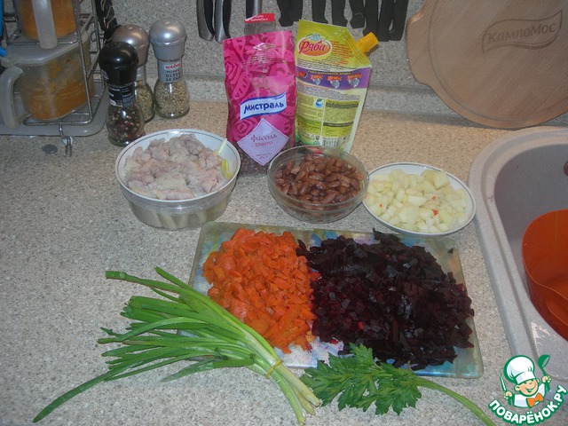 Готовим ингредиенты: предварительно отвариваем свеклу, морковь, картофель.