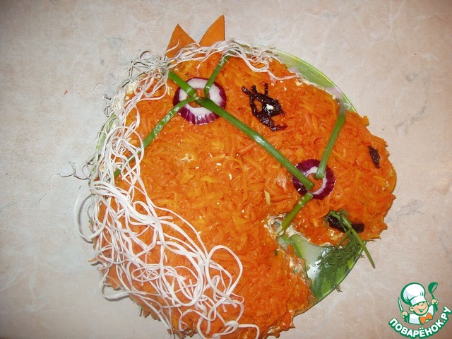 Сверху выложить морковь, заканчивая формировать лошадку.