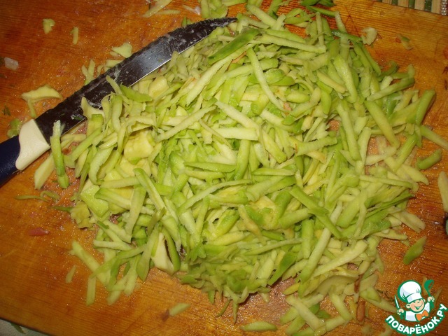 Авокадо очистить от кожицы и нарезать тонкой соломкой.