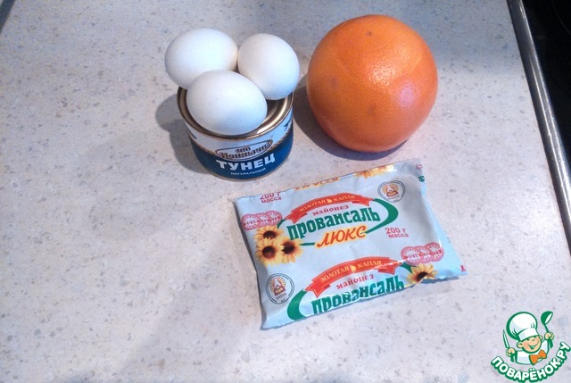| И снова пробуем необычное))) Грейпфрут и тунец шикарно дополняют друг друга. Отлично подавать в маленьких сырных заварных булочках. |