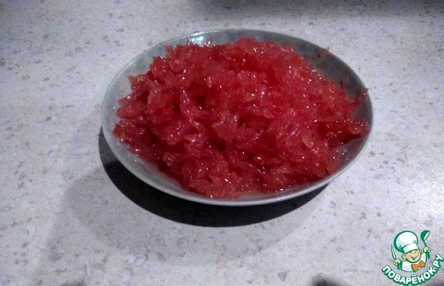 Грейпфрут разбираем (очищаем от кожуры и пленок).