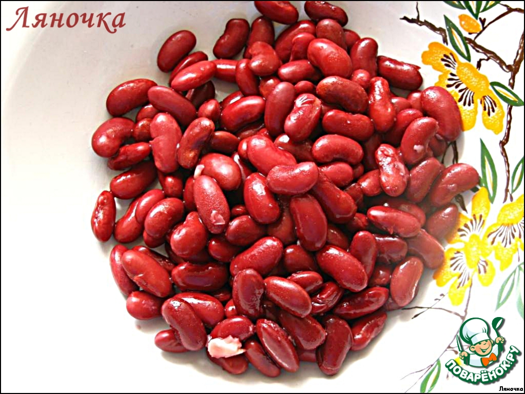 Фасоль промыть хорошенько и выложить в чашку.