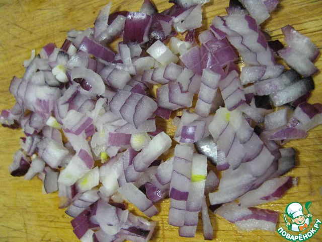 4. Укроп измельчить, лук нарезать кубиками (к сожалению, лук-шалот у нас не продают, я брала Ялтинский лук).