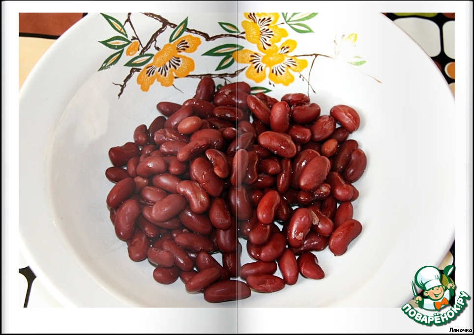 Как пишет автор: "В оригинале должна быть фасоль «черный глаз», но можно брать и другие сорта", так что смело берем самую обычную красную фасоль.