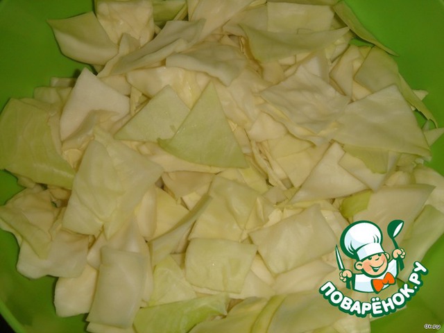 Капусту нарезать квадратиками или треугольниками (как получится), но не мельчить, куски должны быть крупными.