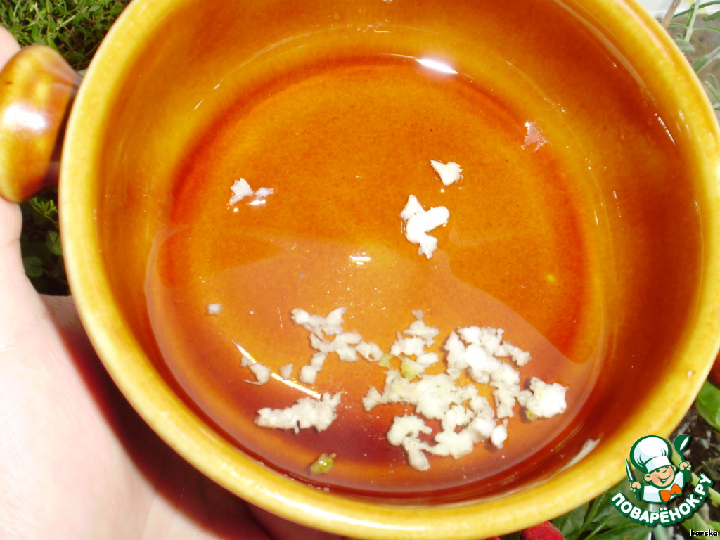 Заправка: в 2 ст.л. растительного масла выдавить зубчик чеснока.