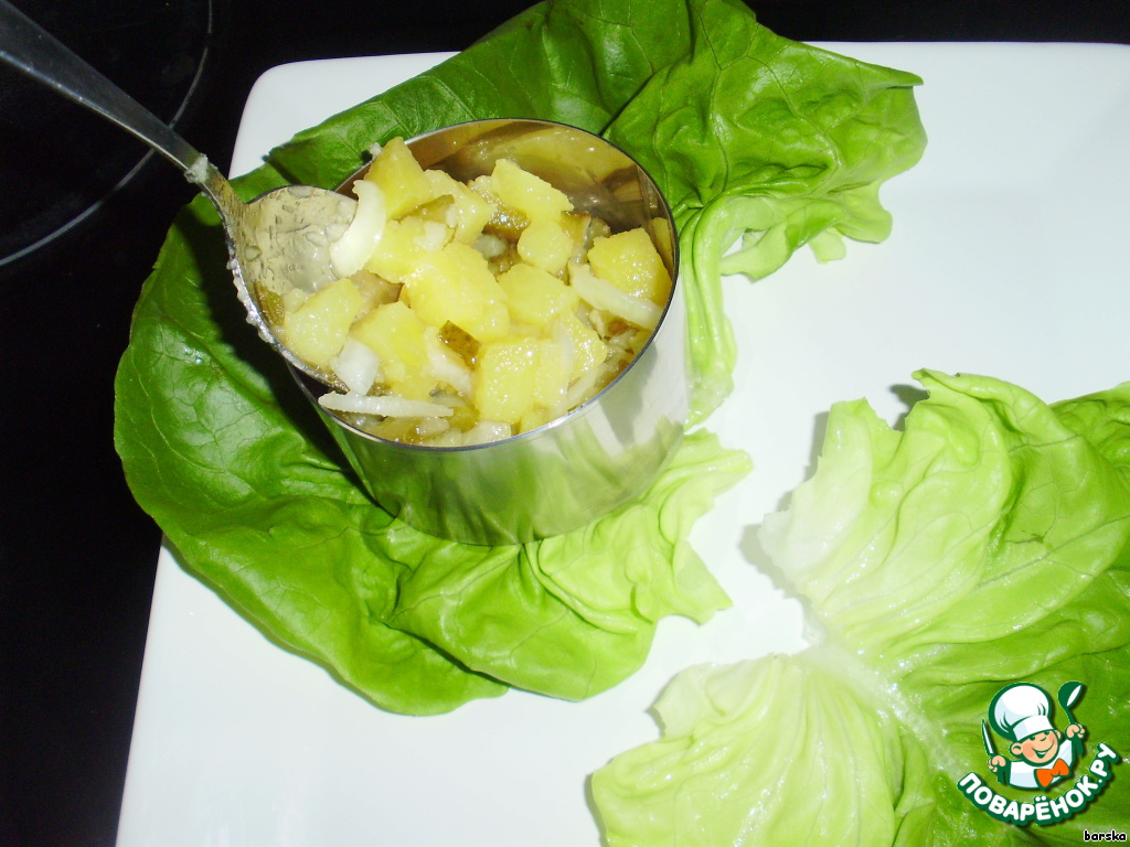 Примечание: салат в такой конструкции не очень долго способен сохранять свою форму, поэтому она необязательна...