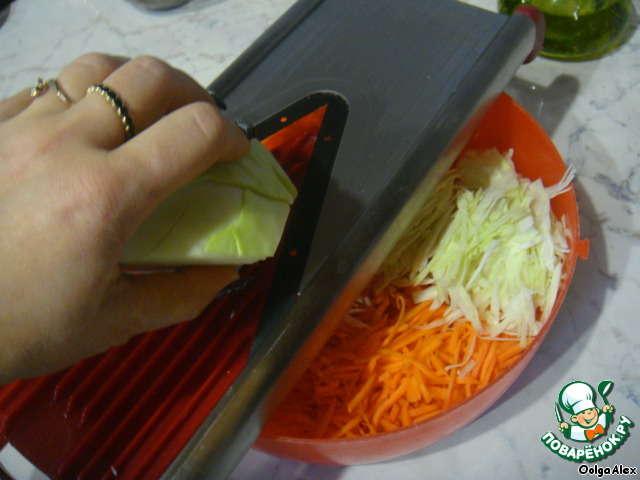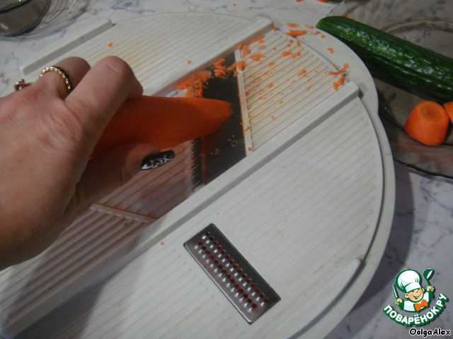 Морковь шинкуем соломкой, если нет тёрки, то можно и нарезать ножом.