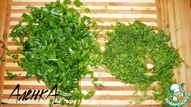 Укроп и зеленый лук вымыть, стряхнуть воду и мелко нарубить.
